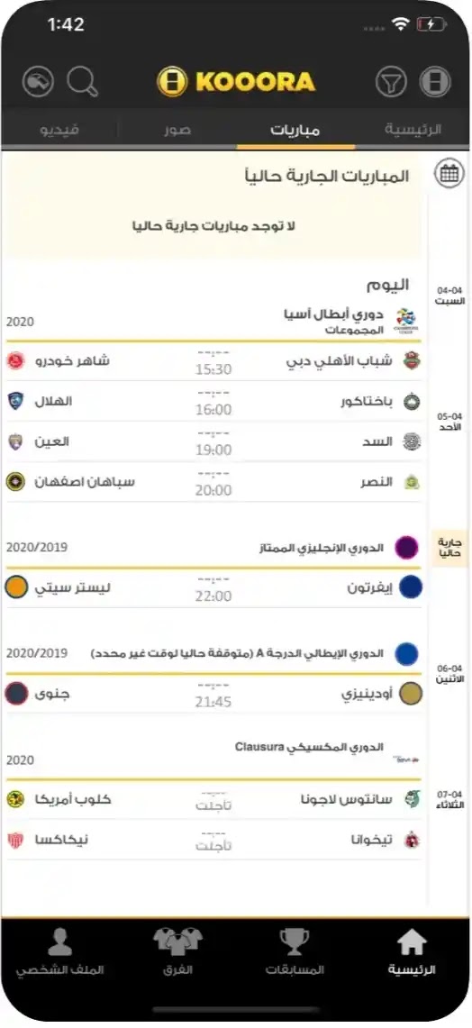 - يدعم تطبيق كورة لايف kooralive مشاهدة جميع الدوريات الاجنبية و العربية مجانا للاندرويد والايفون.
