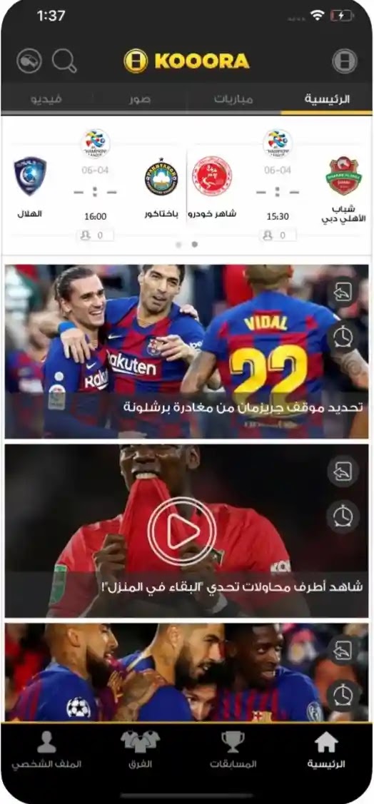 تنزيل تطبيق كورة لايف kooralive لمشاهدة مباريات كرة القدم