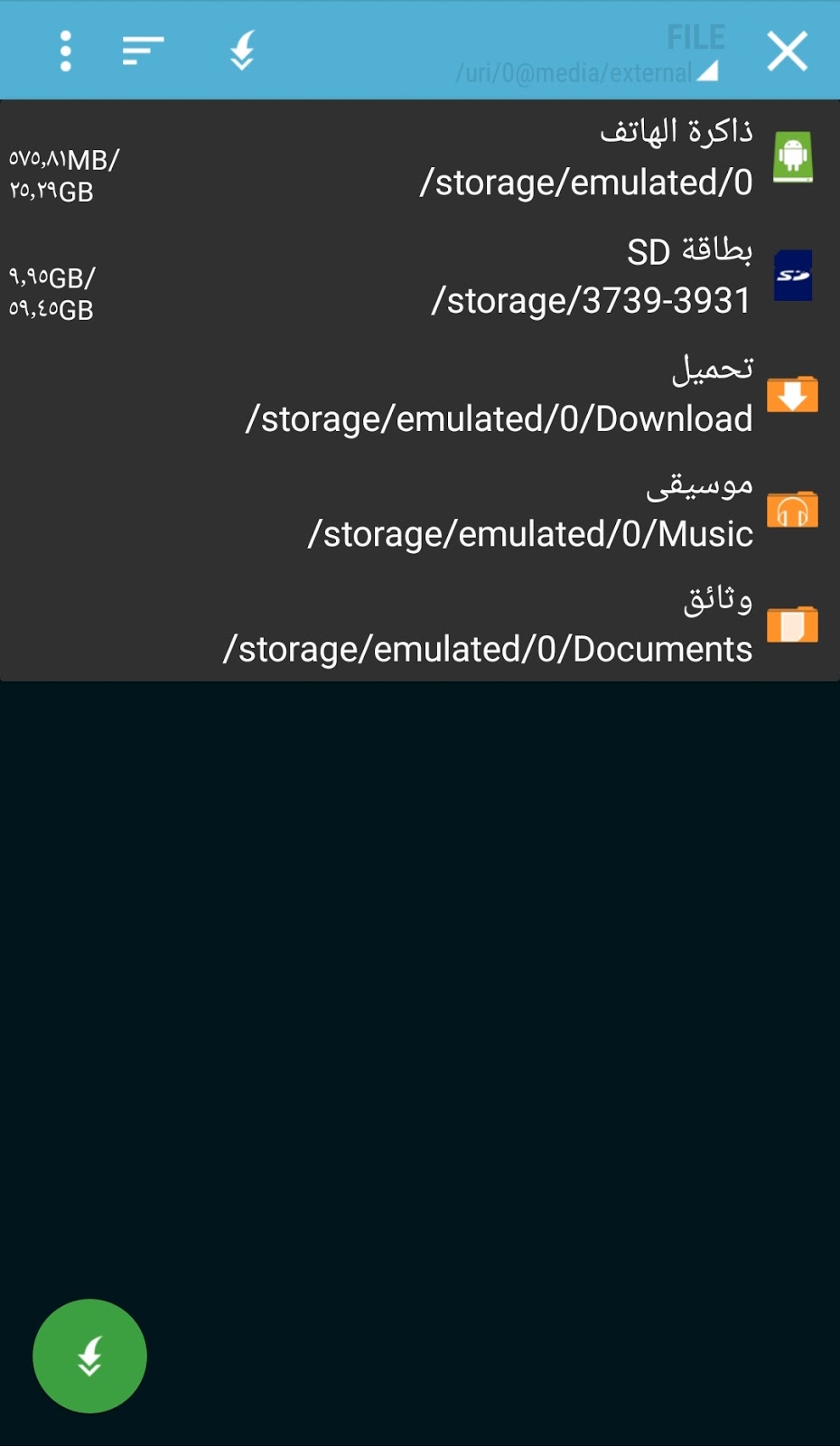 - بعد ذالك قم بإختيار ذاكرة الهاتف والدخول الى المجلد الجديد الذي انشأتة بإسم يمن فون واضغط على السهم الذي في اليسار لكي تتم عملية الإستخراج إلى داخل ملف يمن فون.هنا قمت بعملية استخراج قاعدة بيانات يمن فون بنجاح .